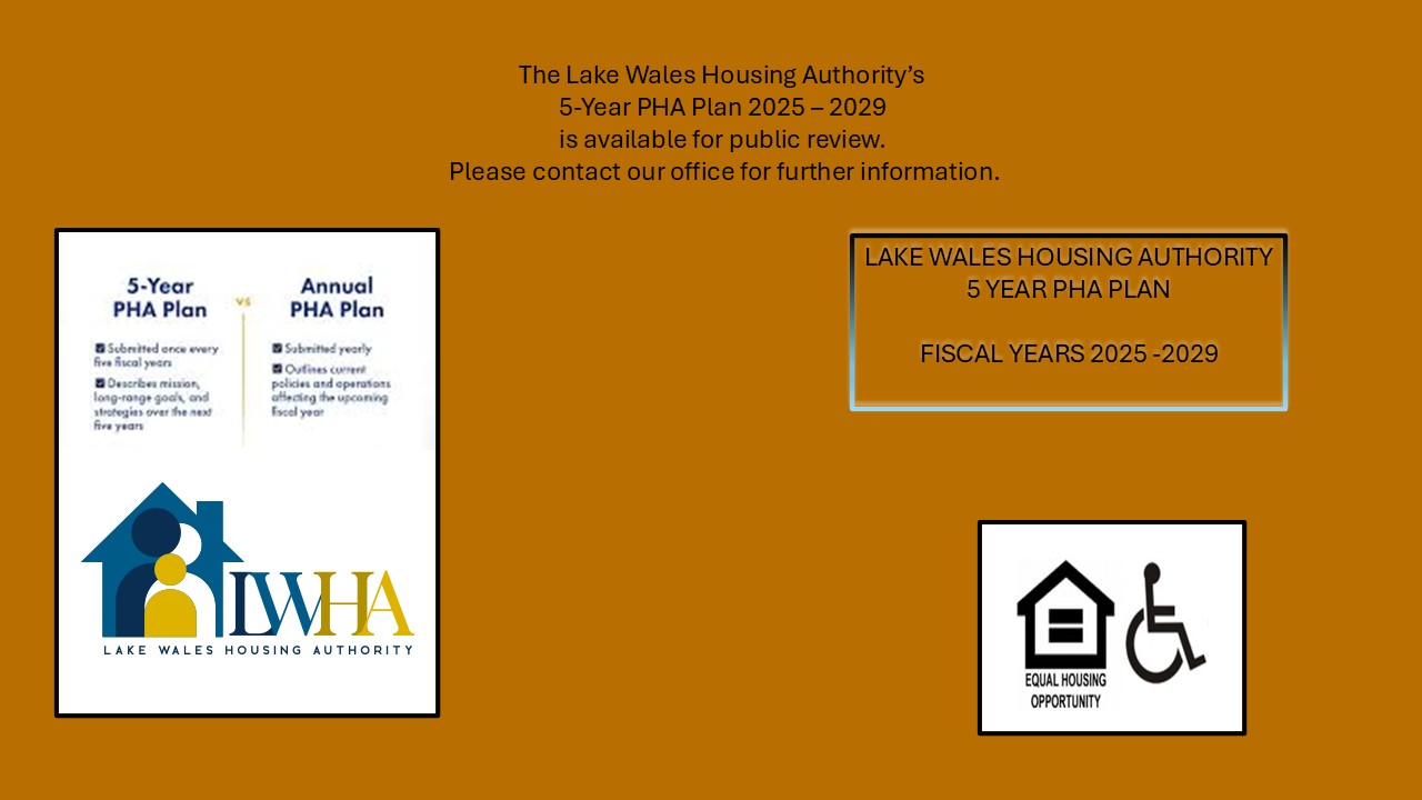 The mission of the Lake Wales Housing Authority is to assist low-income families with safe, decent, and affordable housing opportunities as they strive to achieve self-sufficiency and improve the quality of their lives. The Housing Authority is committed to operating in an efficient, ethical, and professional manner. The Housing Authority will create and maintain partnerships with its clients and appropriate community agencies in order to accomplish this mission.